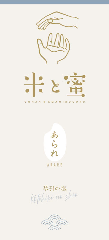 大阪にあるおにぎり屋さん”米と蜜”様の店頭で販売するあられのパッケージデザイン制作をさせていただきました。
