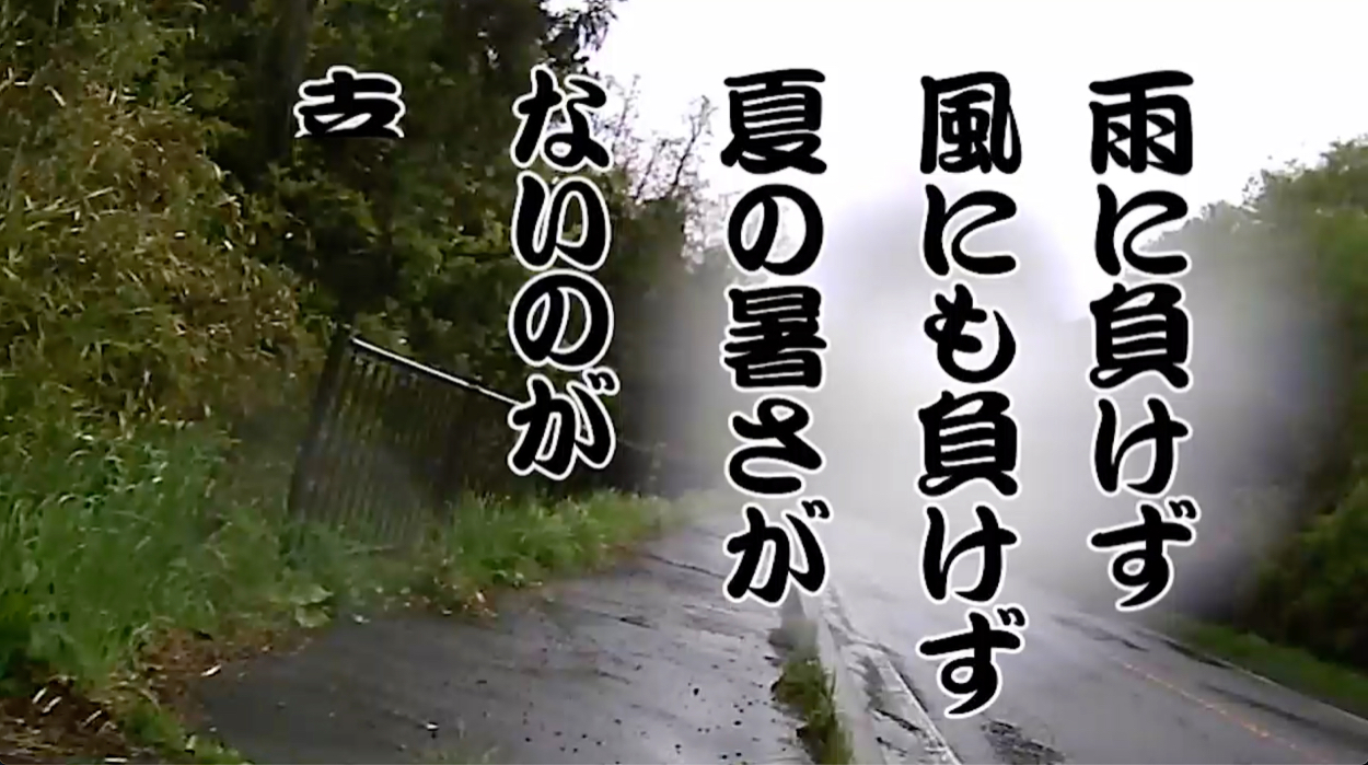 天候は安定しませんでした。暑くないかわりに雨にたたられて途中びしょ濡れになりました。ここの一文字ずつ文字が現れるエフェクトは気に入ってます。流石に某番組のタレントのようなぼやき芸はできません。