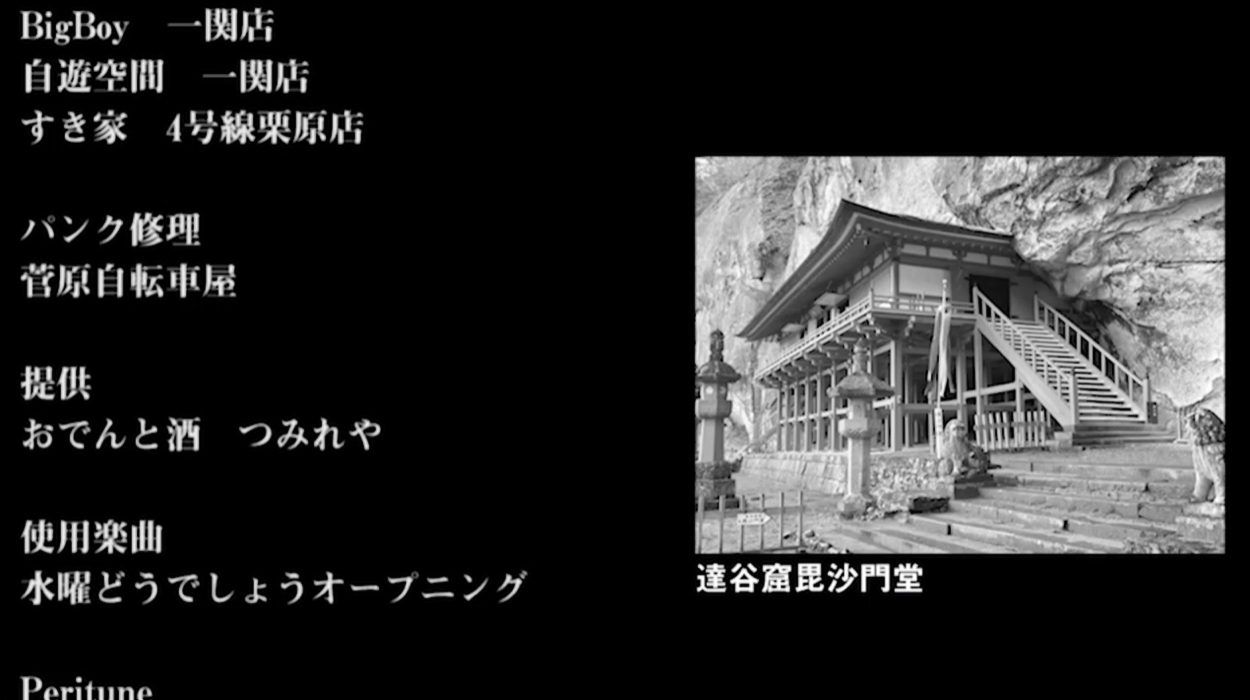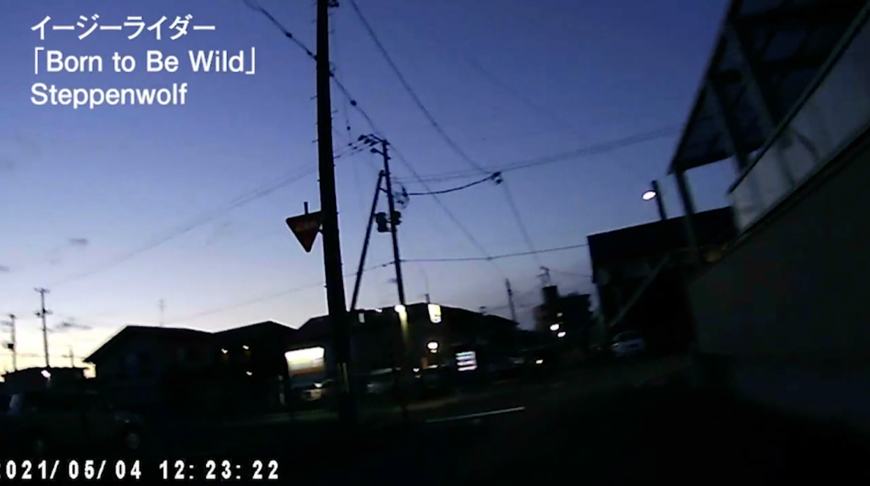 エンディングは佐野元春「サンチャイルドは僕の友達」。今回使われた音楽はあらかじめ何を使うか決めていました。出発はステッペンウルフの「ワイルドで行こう」そしてクラフトワークの「アウトバーン」等ここではこの音楽は使うということを想定して動画を撮りました。「何を撮るか決めていたので」実際にBGMを入れてみてほぼ思った通りの画ができ、編集もそれほど時間がかかる事なく編集する事ができました。(編集期間は1ヶ月)