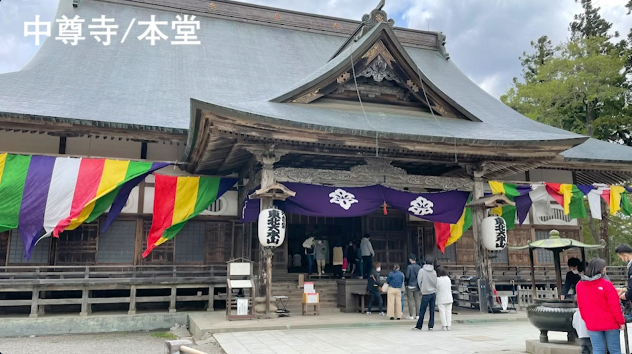 2年前の旅ではこの中尊寺が最終目的地でした。今回は中継点です。コロナ禍の中のゴールデンウィークでしたが観光客は結構いました。この時間になると天候も回復して陽の光も出てきました。濡れていた服も乾き快適に中尊寺を廻る事ができました。光堂はいつ見ても圧倒されます。