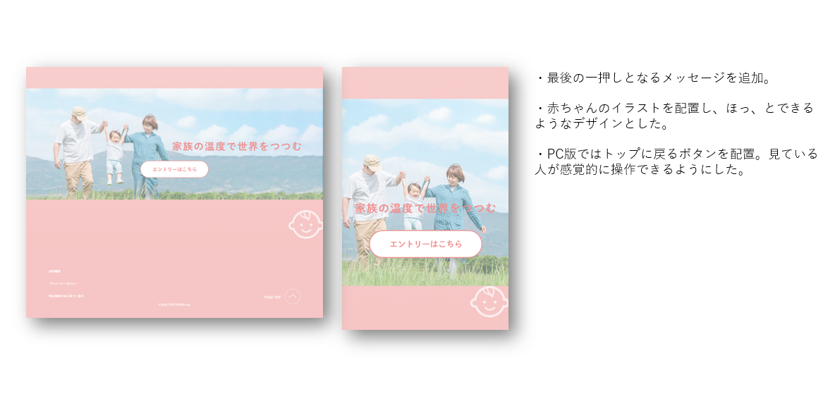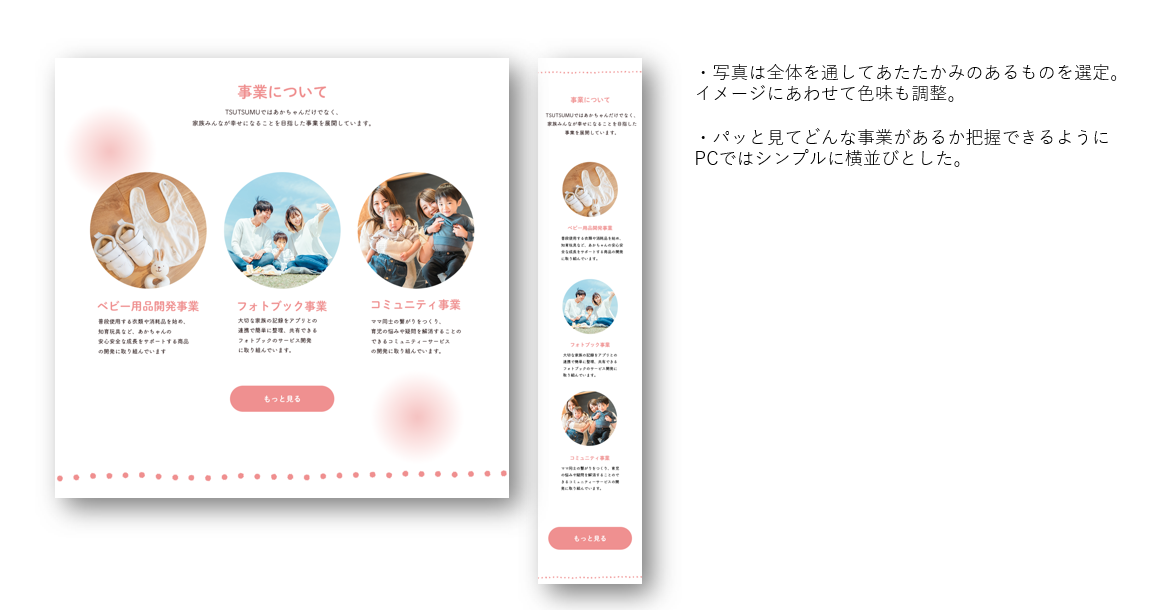 制作範囲:PC版・SP版ワイヤーフレーム、ムードボード、PC版・SP版デザインカンプ、コーディング(レスポンシブ)