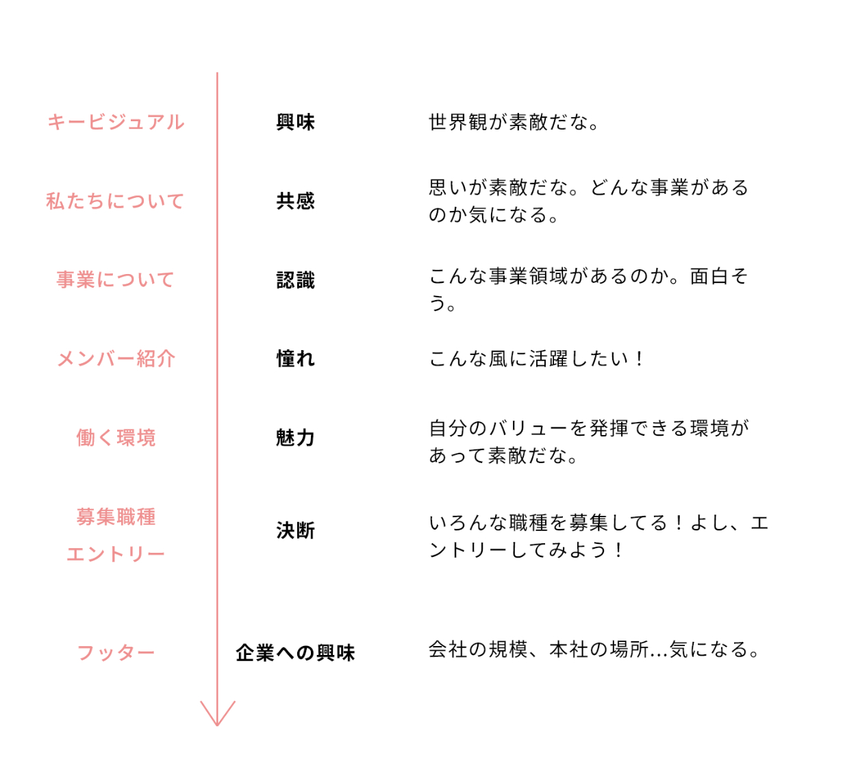 ・採用サイトを通じてエントリーをしてもらうこと(採用強化のためできるだけたくさんの応募が来てほしいが、エントリーがあれば誰でもいいわけではなく、カルチャーフィットする方に応募してもらいたい)