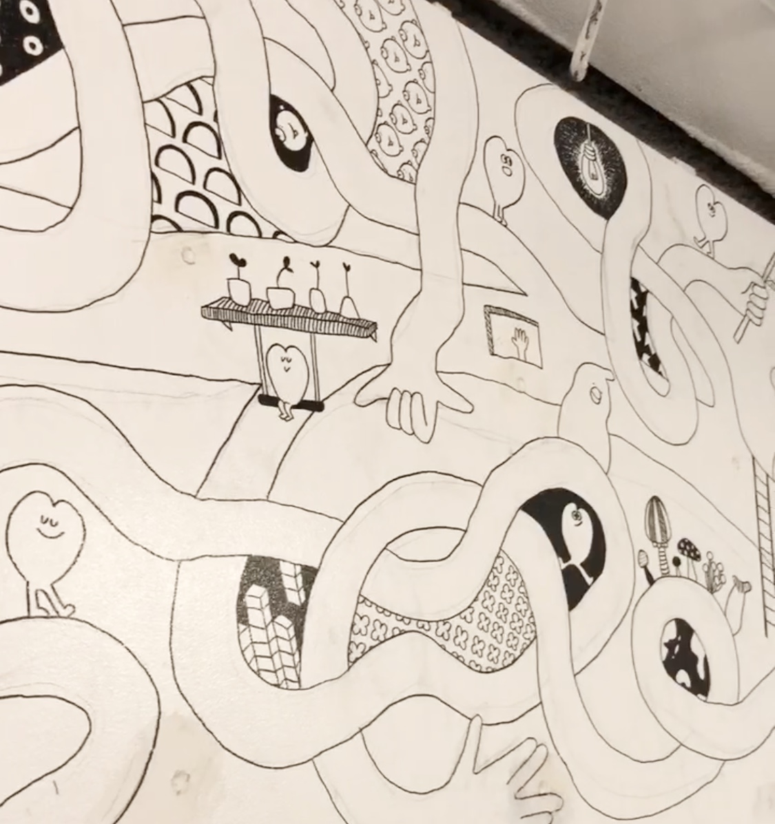 代官山にあるブランド古着屋、鶯vintageの壁画を描きました。
