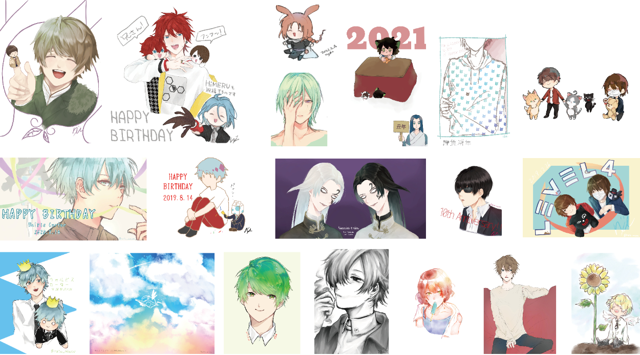 オリジナルから二次創作のイラストをまとめました。