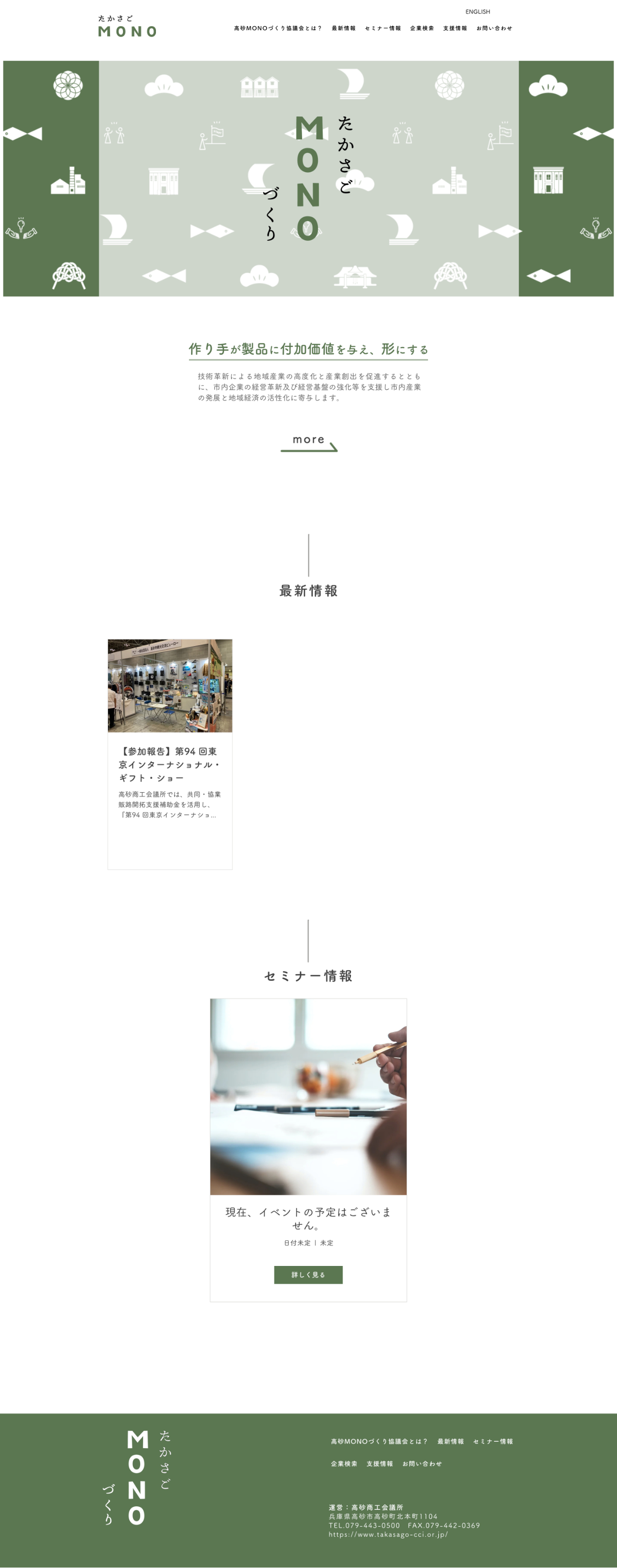 実案件|webデザイン/たかさごMONOづくり すぎうらあすか デザイナー OVERVIEW https://www.takasagomono.com/ YEAR 2022 サイトデザインを担当しました。高砂市の名物である松の木、レトロな街並みをイメージしたデザインです。使用ツール:Photoshop/Adobe XD WEBSITE