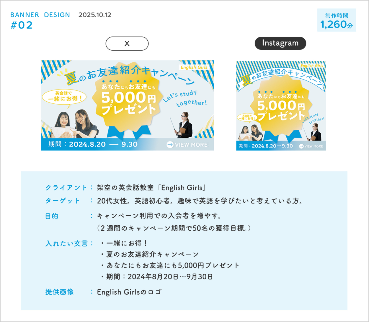 【架空】英会話教室 夏のキャンペーンのバナー制作