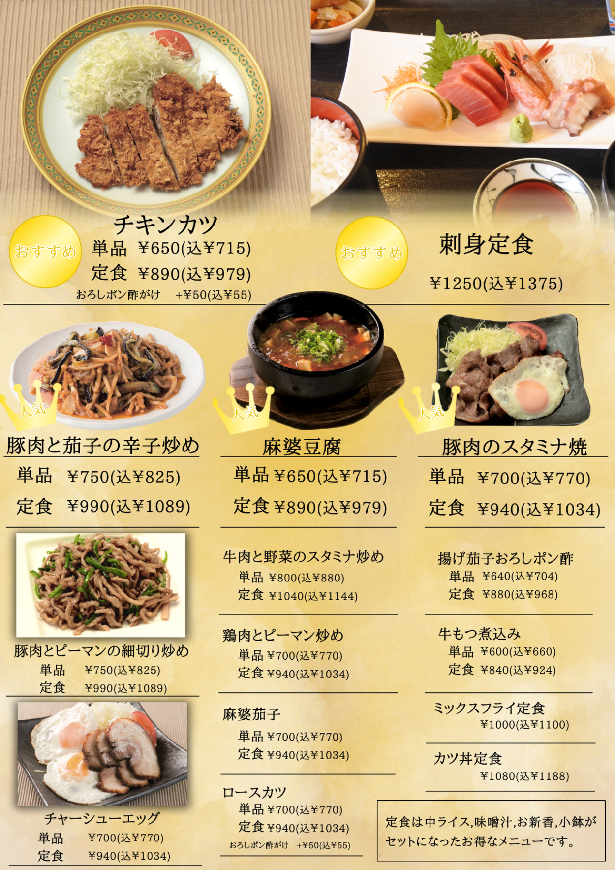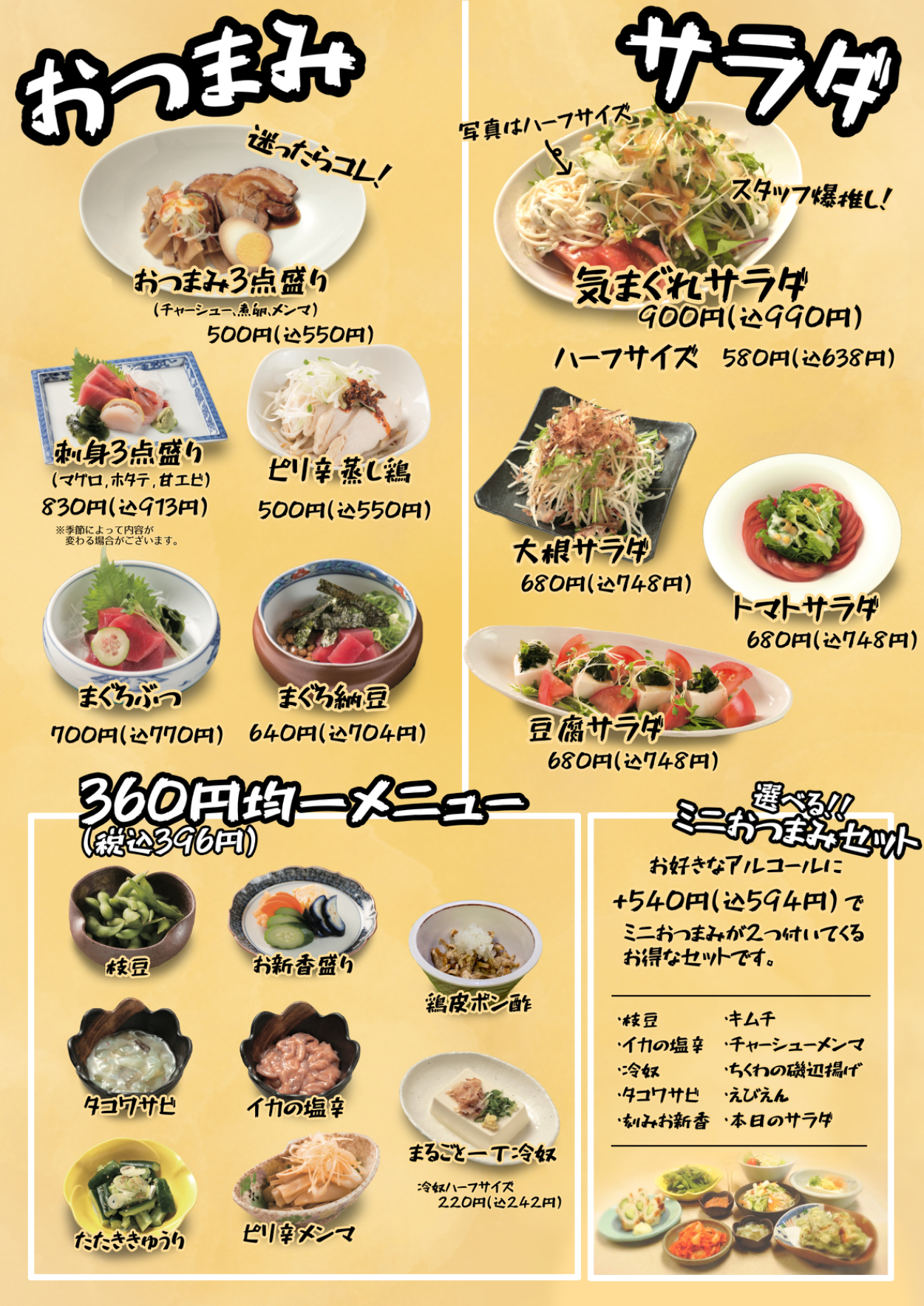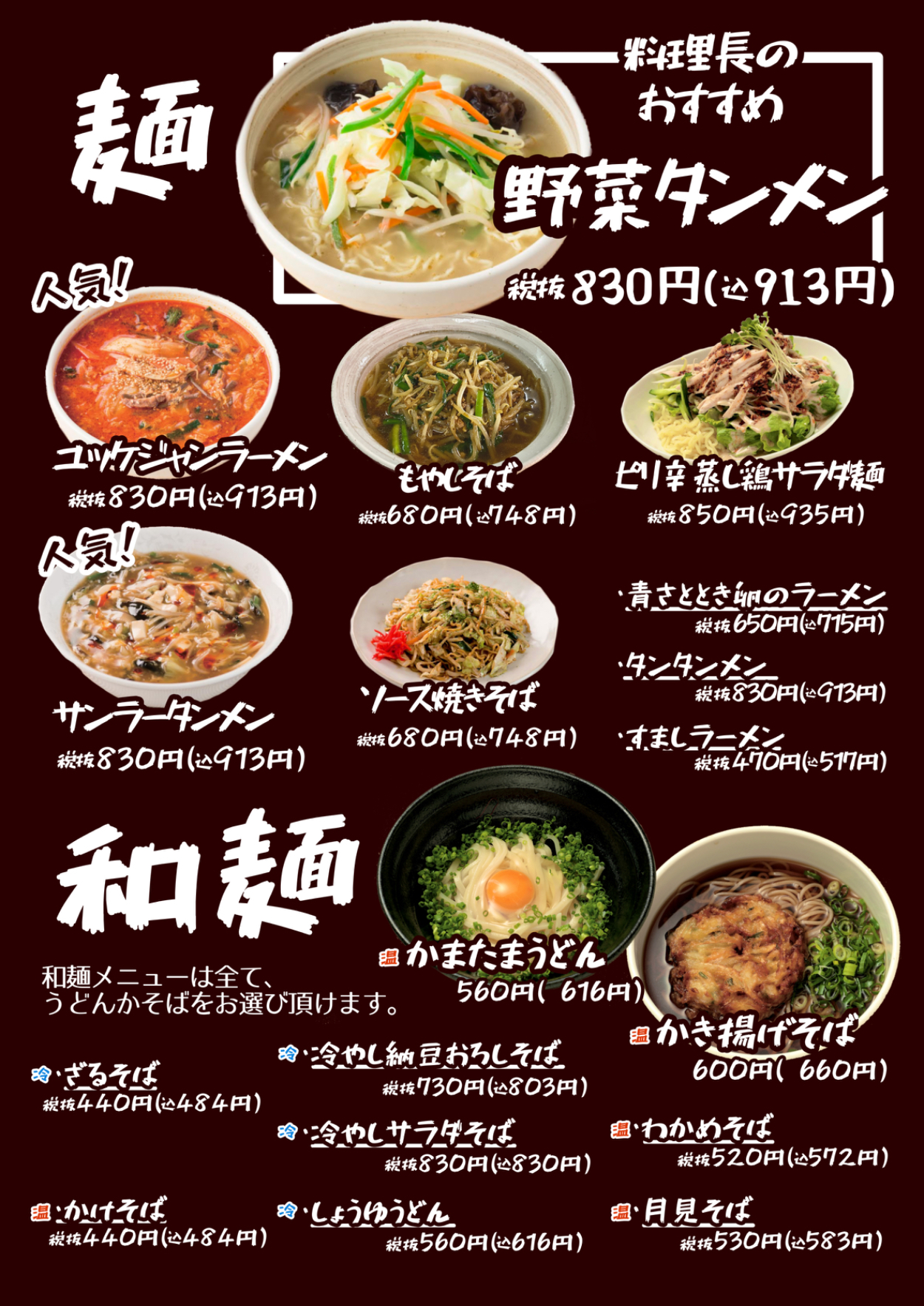 (ゆの郷)お品書き② 吉田 真都 グラフィックデザイナー・マーケター志望 OVERVIEW お食事処うれし野のメニューデザインを担当しました。 YEAR 2020 もう少し写真が欲しいとのことで、新しく制作したメニューです。表紙は別の方が担当したので載せていません。社内既存の写真を背景透過するのが1番大変でした。