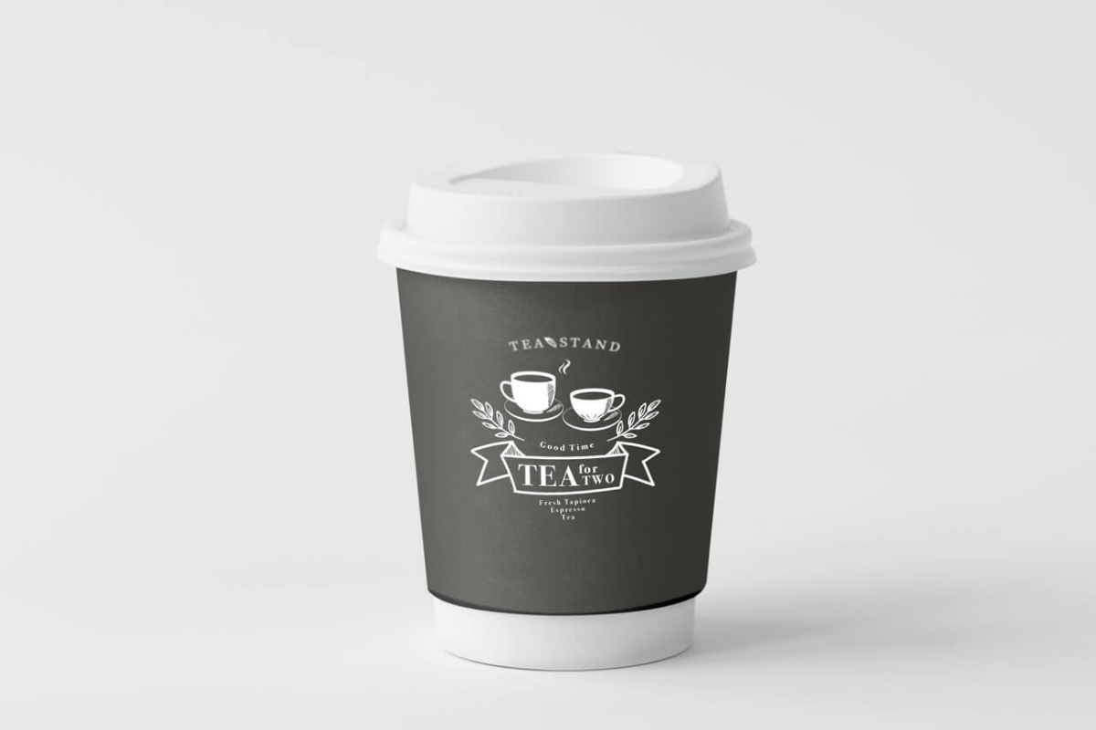 『TEA FOR TWO』という店名をもとに、『寄り添うティーカップ』をモチーフにデザインしました。手書き風のレトロなイラストなので、店名部分のリボンはシャープにすることでモダンな雰囲気を演出しています。