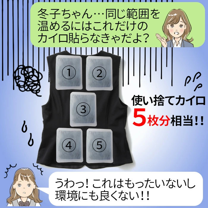 ヒーターベストやヒータージャケットなどは、一昨年ほど前から徐々に広まっていますが、取り扱いのほとんどが作業服メーカーであり、「男性用」のイメージが定着していました。しかし、外働きの男性だけではなく、オフィスの冷えに悩む女性にも良いアイテムだと思い、今回取り外しができるパッドタイプが登場したため商品ページデザインに力を入れました。