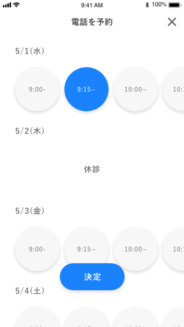 電話予約画面