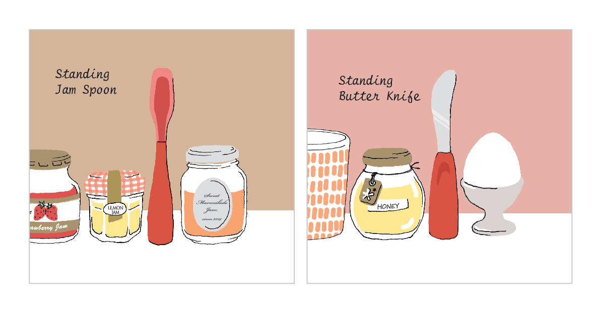 「立つジャムスプーン」「立つバターナイフ」商品イラスト