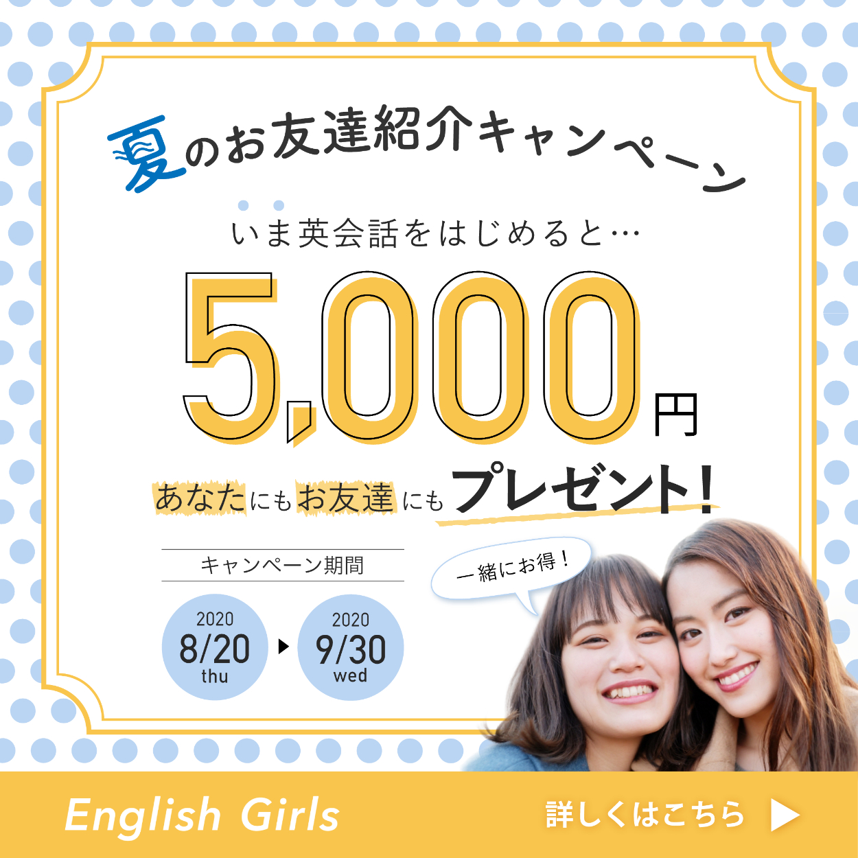 <文言>①夏のお友達紹介キャンペーン ②あなたにもお友達にも5,000円プレゼント ③期間:2020年8月20日~9月30日 ④一緒にお得!