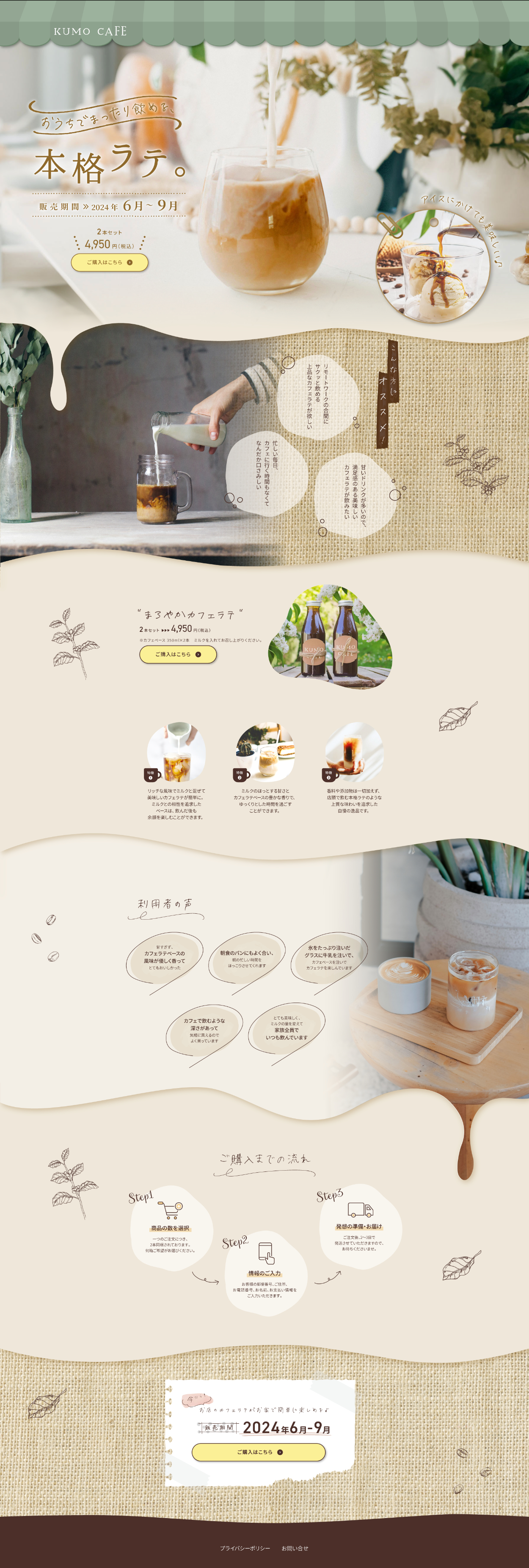 キャッチコピーの「お家でまったり飲める、本格ラテ」 をイメージして、リラックス、温かみ、親しみ、ナチュラルをテーマにデザインを作成しました。