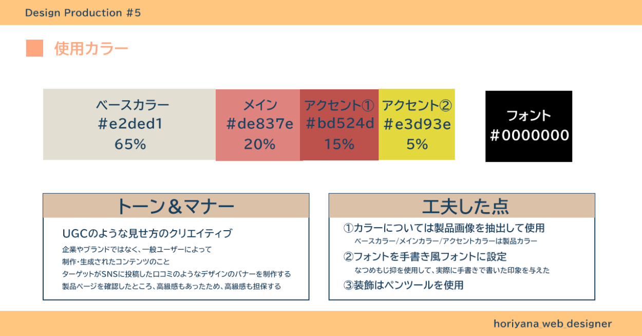 この制作で学んだことは、ターゲット設定を詳細にクライアントと確認するし、互いに