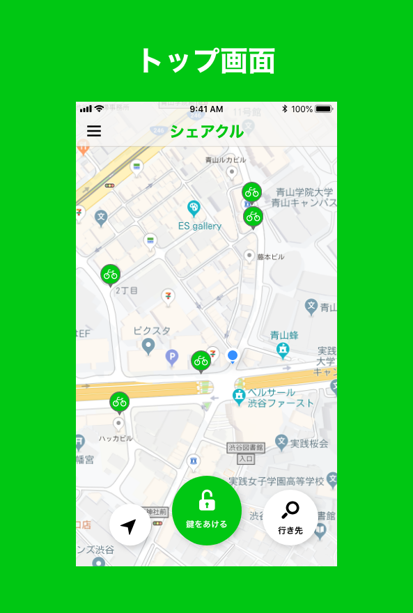 スマホ1つで簡単にシェアリングサイクルアプリを見つけて利用できるアプリ