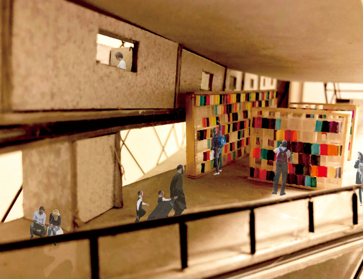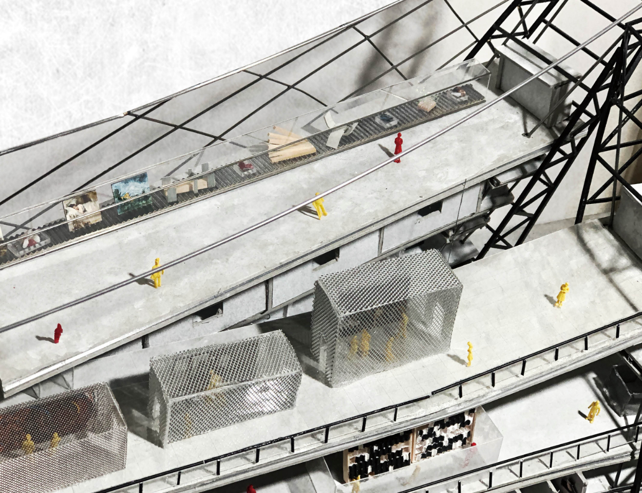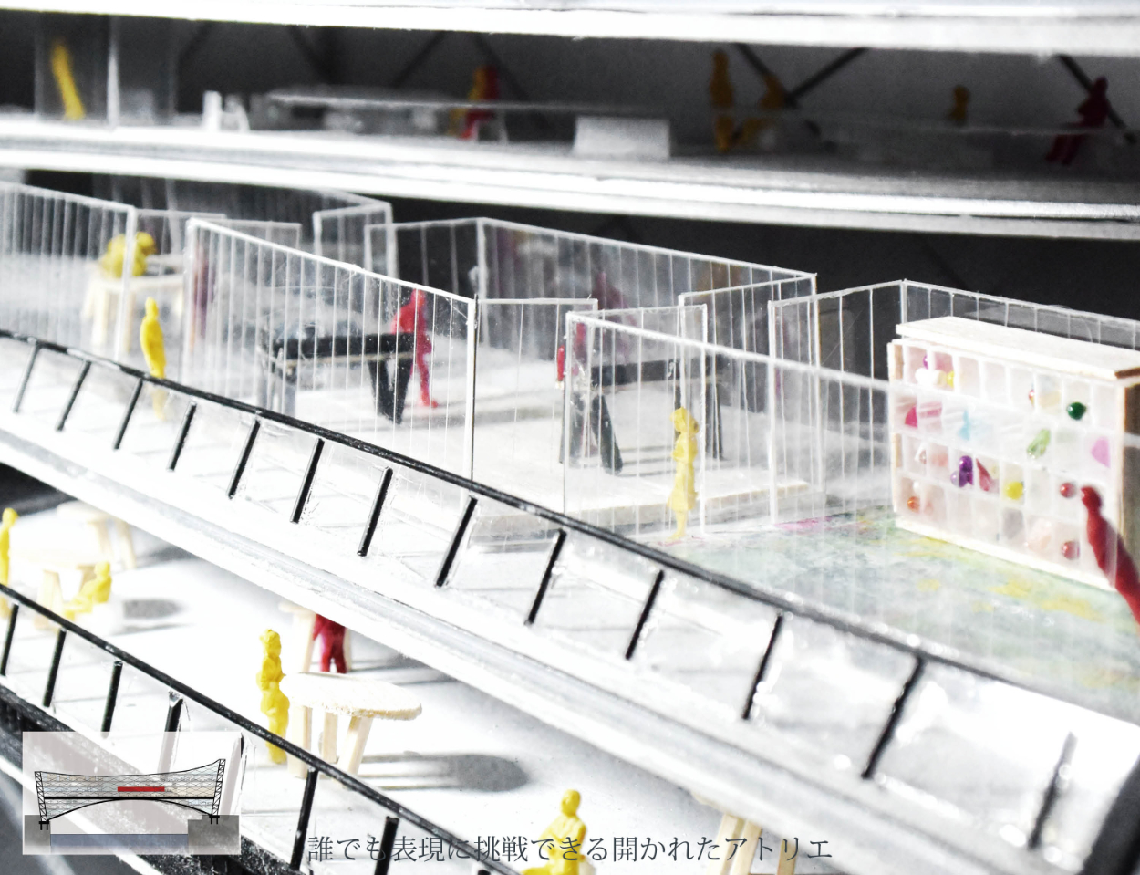 芸術作品の物流、また創作過程の可視化によって、芸術が生活に根付かない現状を、親和していくための建築を計画する。芸術家が訪れ、作品を創る場とする。その制作過程を可視化することによって、芸術家同士の交流や、市民の芸術への興味の増長増加を促進させる。