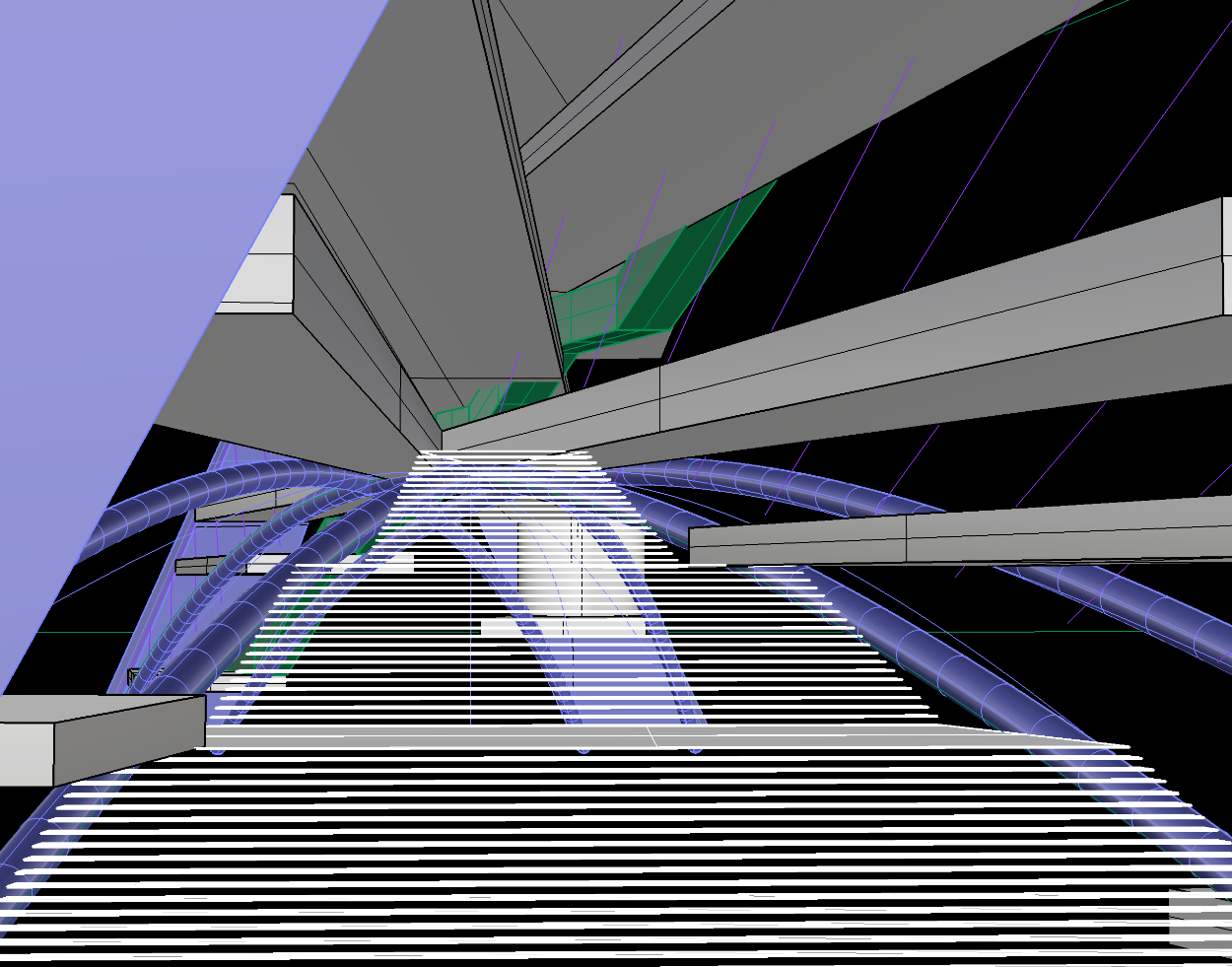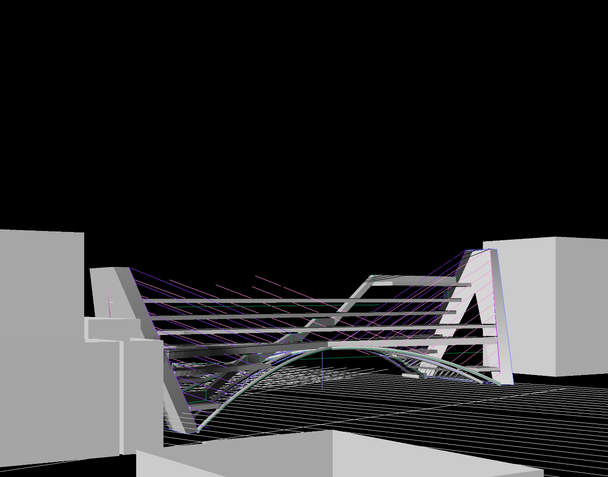 Scale-S|建築スケール-橋をかけるように埠頭の両岸にアーチをつくる。隣接する倉庫と集合住宅を緩やかに繋ぐ構造体によって、芸術を迎え入れ、発信していくゲートをつくる。