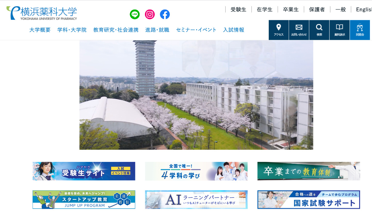 【WEB /バナー】大学HP in'k デザインや書きものしてます <ツール>WEB用バナー<内容>大学ホームページのトップページに表示するバナーの制作。大学のカラーである緑と青をメインに、視認性を確保しながら、各特徴をわかりやすく表現することを意識しました。大学HP WEBSITE