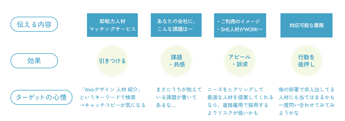 ・目的 「SHE WORKS for Biz」という人材マッチングサービスがあることを認知してもらい、顧客からのお問い合わせ・サービス利用に繋げること。
