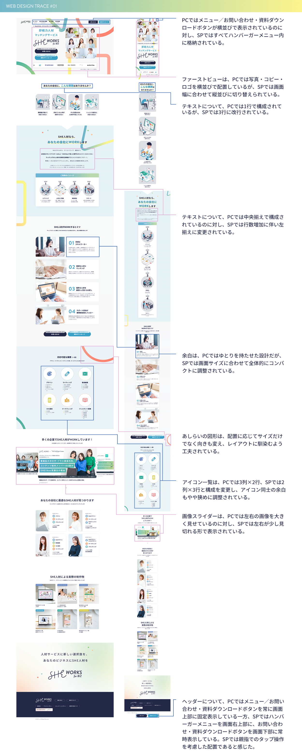 【対応範囲】LPトレース・スタイルガイド作成・PCとSPのレイアウトの違い分析 【制作期間】1週間 【制作時期】2025年10月