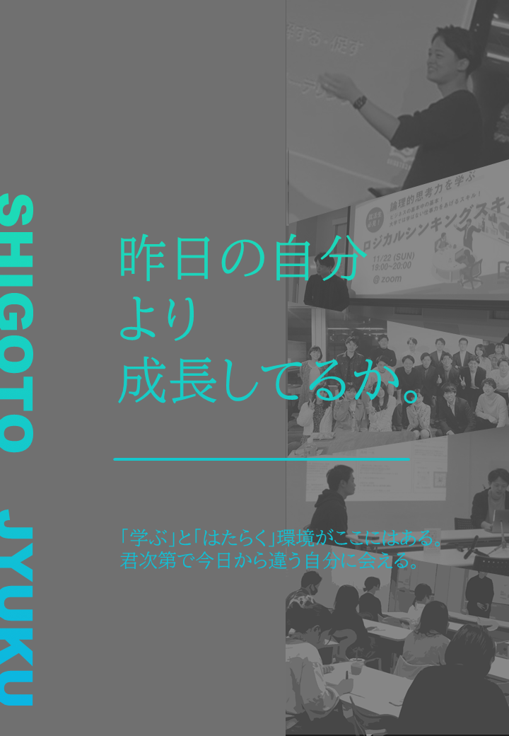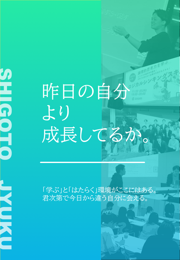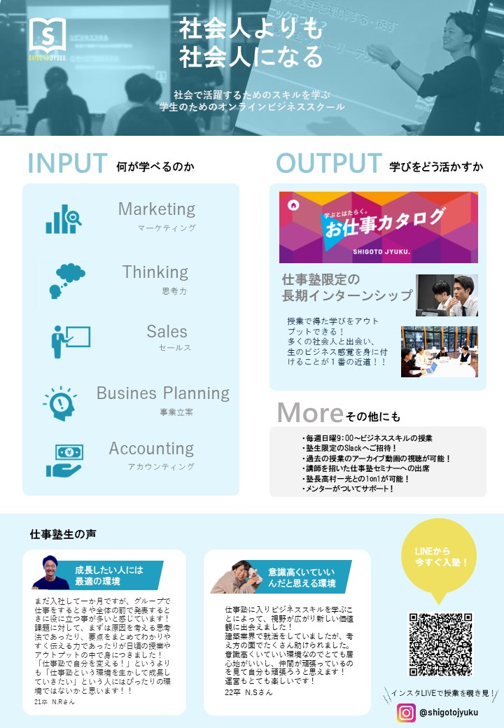 大学生限定ビジネススクール「仕事塾」の概要を説明したチラシを作成しました。