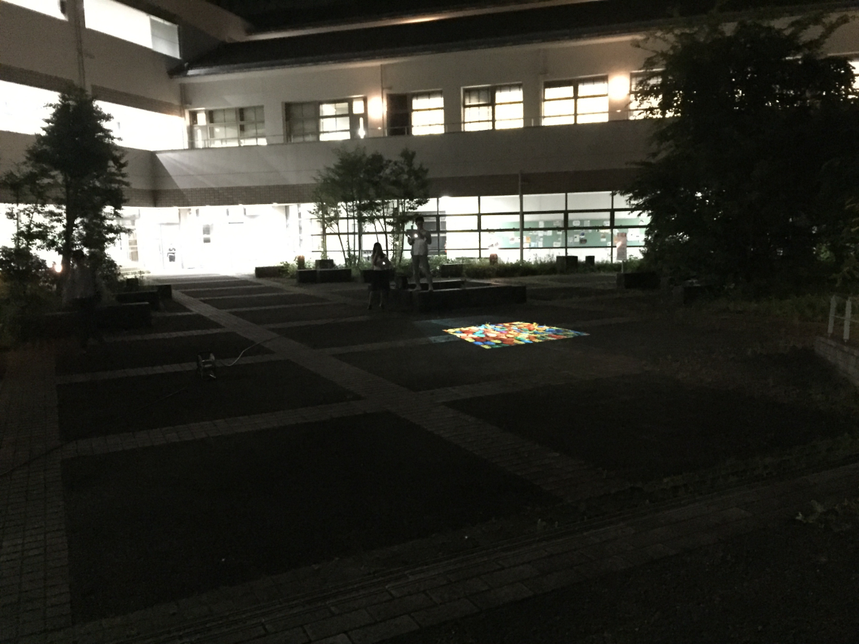 場所決めから始まり大規模な商業的プロジェクションマッピングはできないと判断し、中庭全体をプロジェクションマッピングすることにより空間を演出するエリアプロジェクションマッピング(造語)をすることに決めた。