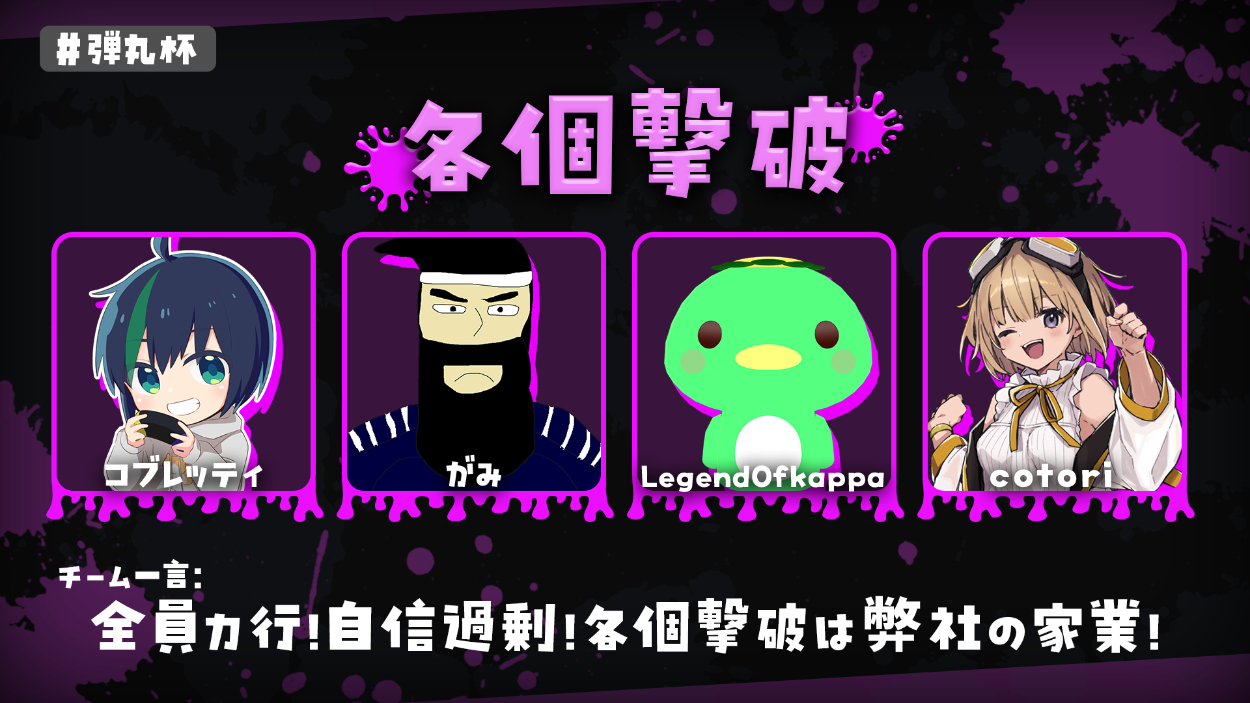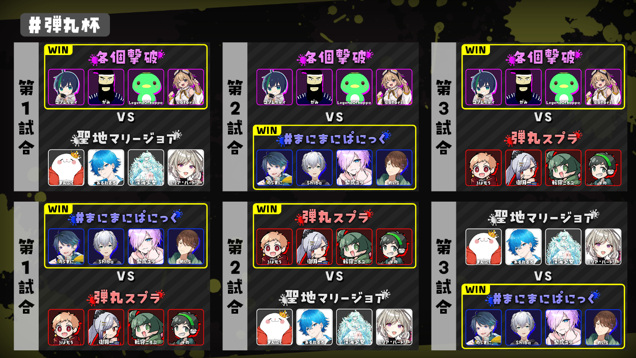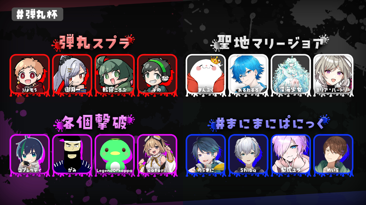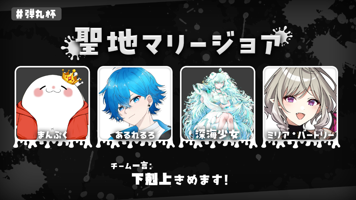 御月一さまの配信で使用するサムネイル、チーム表、優勝者画像を制作しました。