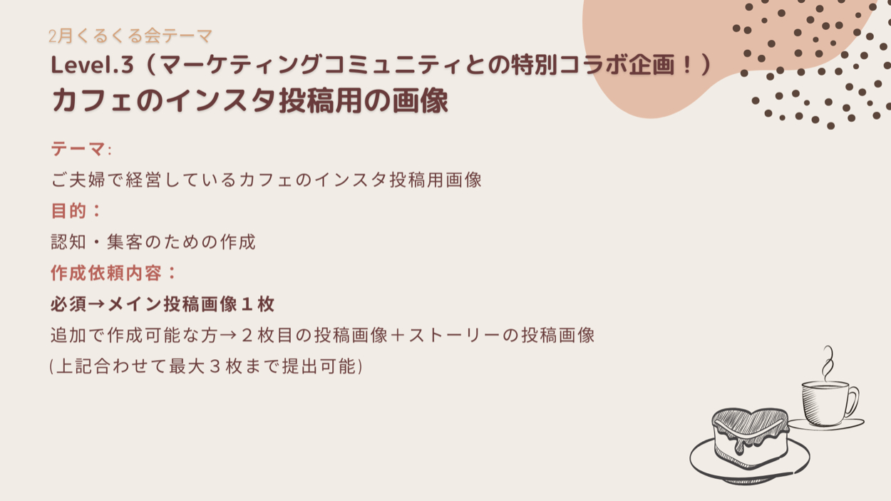 3枚目は湯気の中の文字の字体を変更し、効果も加えることで背景に負けないくらいに視認性を上げたこと。加えて、写真全体をシェイプで囲いました。女性が好む傾向のある、コーヒー・チョコレートに近いブラウンを使用しました。