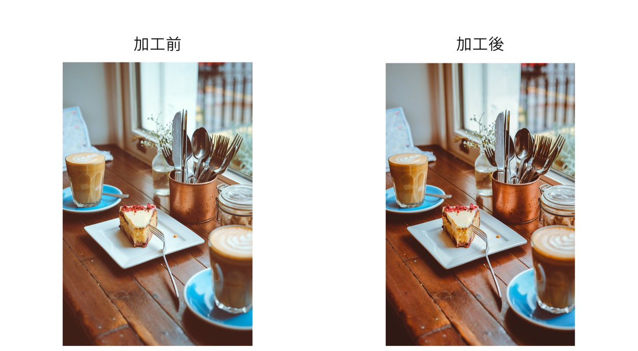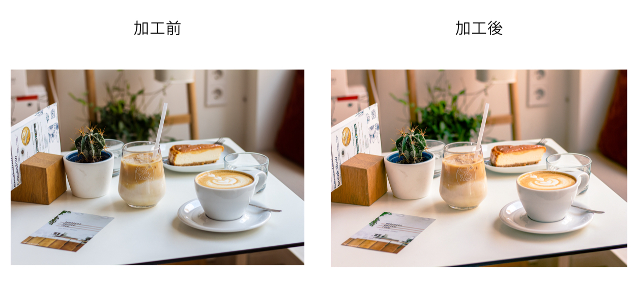 そのために、加工した写真は細かな色味の調整に加えて、色温度や彩度、コントラストを調整しました。