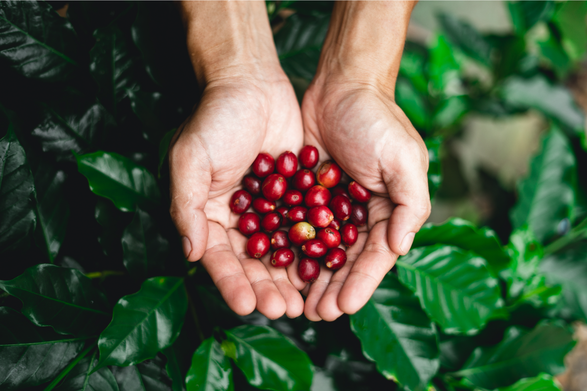 不透明度80%に設定した画像をのせた後に、農家さんの手とコーヒーの実を引き立たてるために画像をPhotoshopで切り抜いてレイヤーを重ねます。