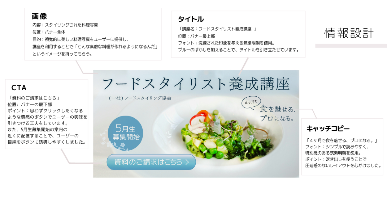 制作時間:情報設計・素材集めを含め1.5時間(バナー制作時間:約1時間)