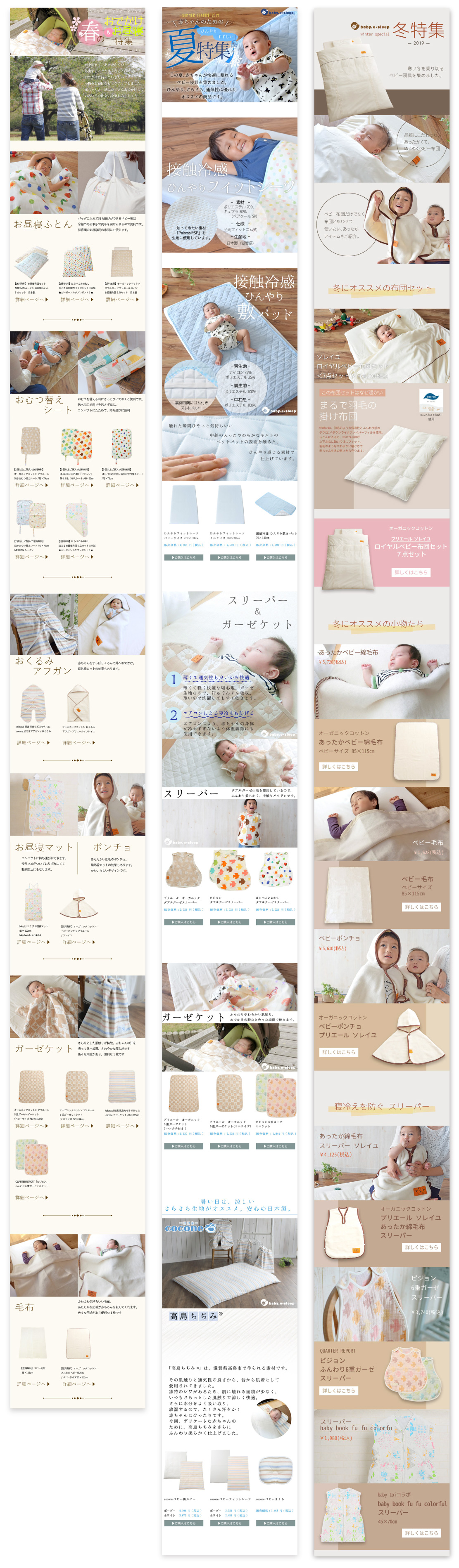 布団は季節によって使い方が大きく変わるため。季節ごとにユーザーに提案できるページはかなり重要でした。