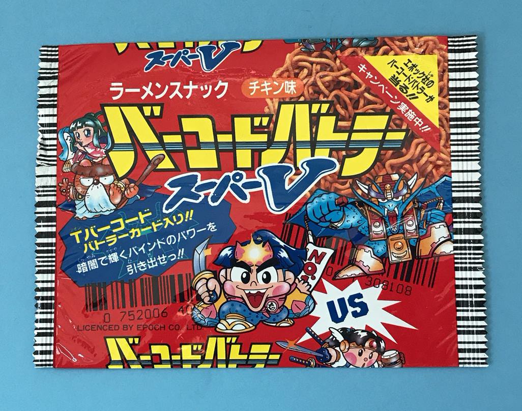エポック社のバーコードバトラーで遊べるカードが付いたお菓子です。