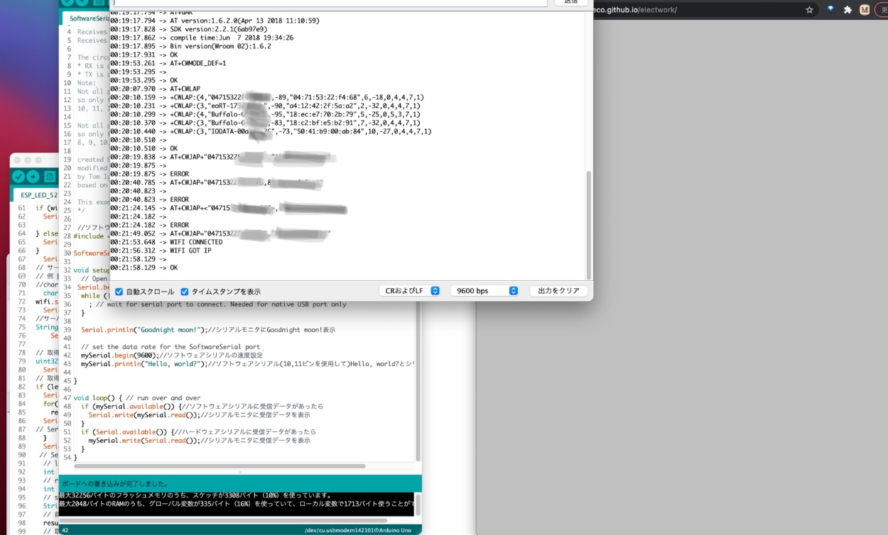 一応webブラウザからLEDのON/OFFをコントロールできましたが、ブラウザでボタンを押してからLEDが反応するまで40秒ほどかかり原因を見つけられませんでした