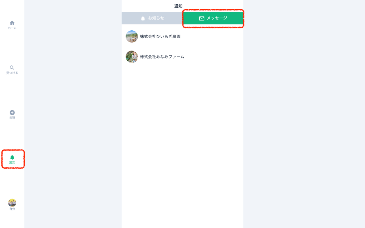 通知画面ではメッセージをやり取りしているユーザーの一覧を確認できます。
