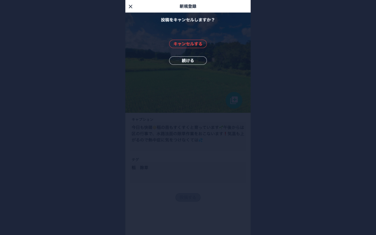 また、キャンセルする際には、確認のモーダルウィンドウを表示するようにしました。