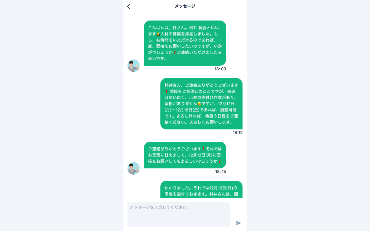 ユーザー名をクリックすれば、対象ユーザーとのメッセージ画面に遷移します。