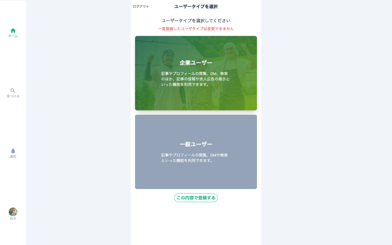 「求人支援アプリ つぐもん」では、企業ユーザーと一般ユーザーの2種類のユーザータイプを用意しています。