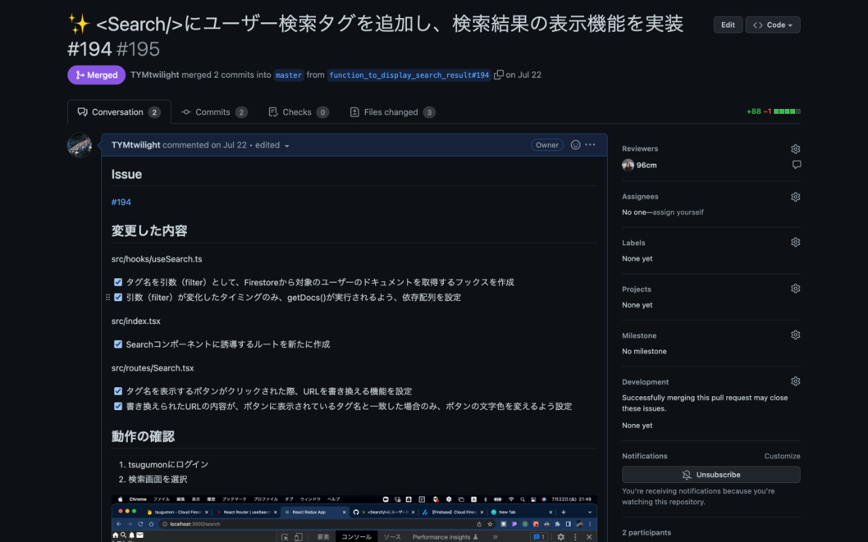チームでの開発を意識し、GitとGitHubを活用してバージョン管理をおこないました。実際の業務を意識して、イシューやプルリクエストのコメントを書くなど工夫しております。