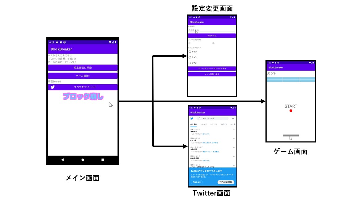 - ゲーム内の設定(ブロック数、ボールスピード、ユーザーネーム)を変更できる機能