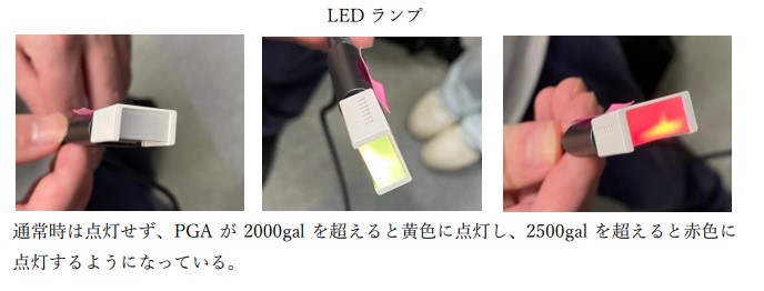 PGA の基準値はトラックの荷台の平均加速度である 2500gal 以上で商品が崩れる可能性有 りとみなし、警告する。また、2000gal 以上で注意とする。
