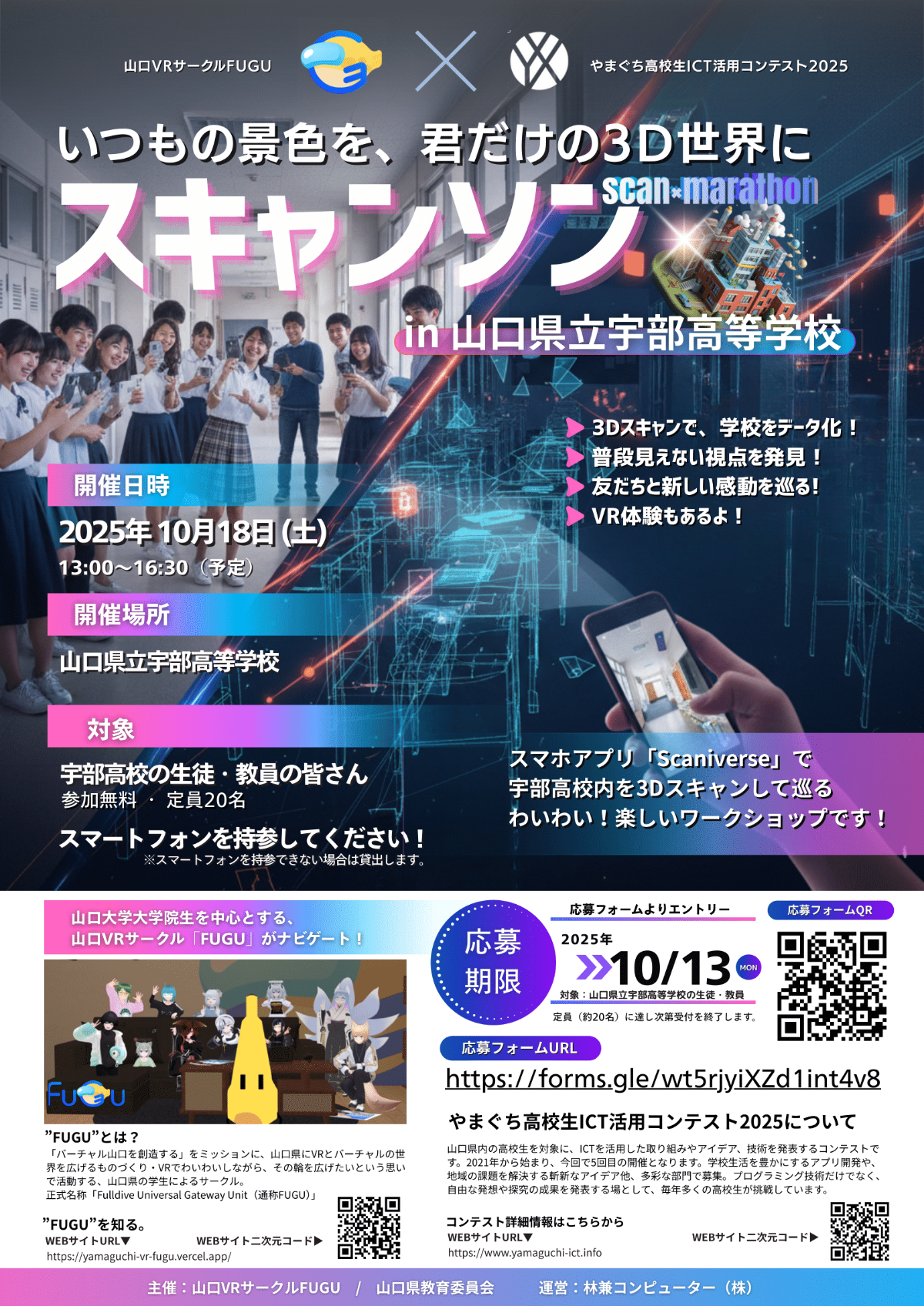 3Dスキャン、VR体験、アイデアソン、FUGUと高校生の交流を行った。