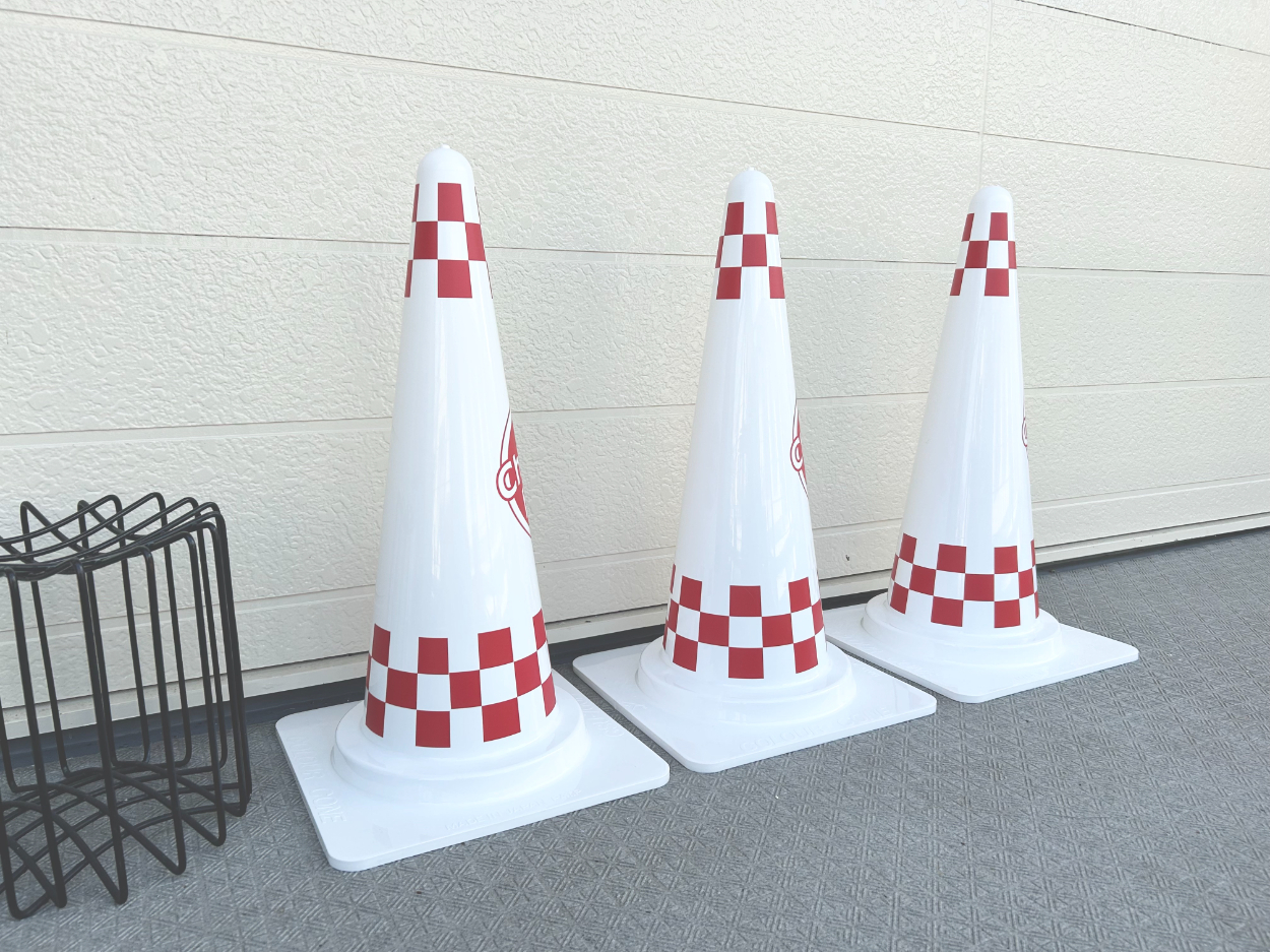 三角コーンカッティングシート施工 やすもと なな イラストレーター OVERVIEW チェリービーンズ焼津店さま YEAR 2024 360度ぐるりとチェック柄を配置したオリジナル三角コーン前面のみのシート施工はよくありますが、360度してくれるところがなかったので自分で作りました。