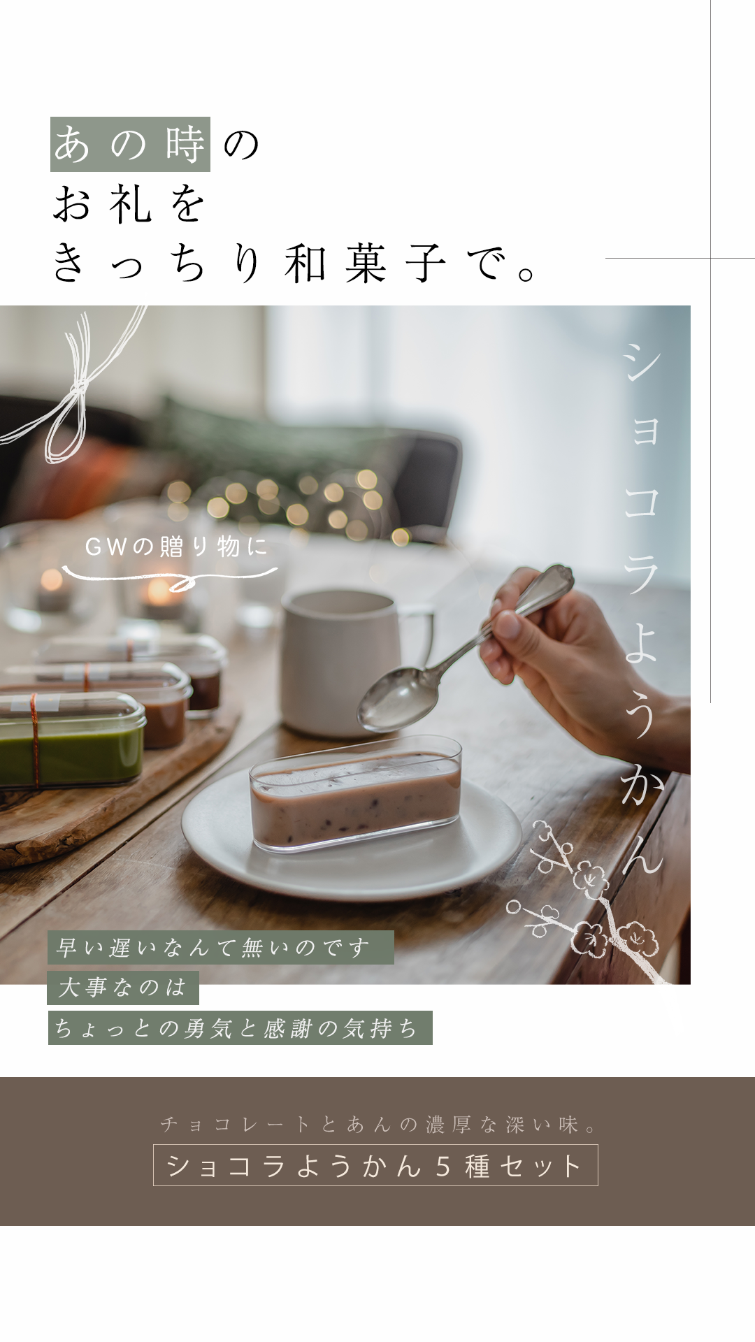 それぞれサブコピーの背景はショコラようかんと同じ色を使用して統一感を出しました。