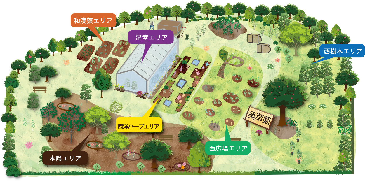 HP用「薬草園」画像(MAP) in'k デザインや書きものしてます OVERVIEW 大学内の施設「薬草園」のWEBサイトに掲載するMAP YEAR 2021 薬用植物園薬用植物園(薬草園)エリア紹介用画像。6つのエリアごとに植栽されている植物を紹介するための元となるMAP。WEBサイトのナチュラルなテイストに合わせて、リアルを追求しつつ、やさしいイメージを目指した。 WEBSITE