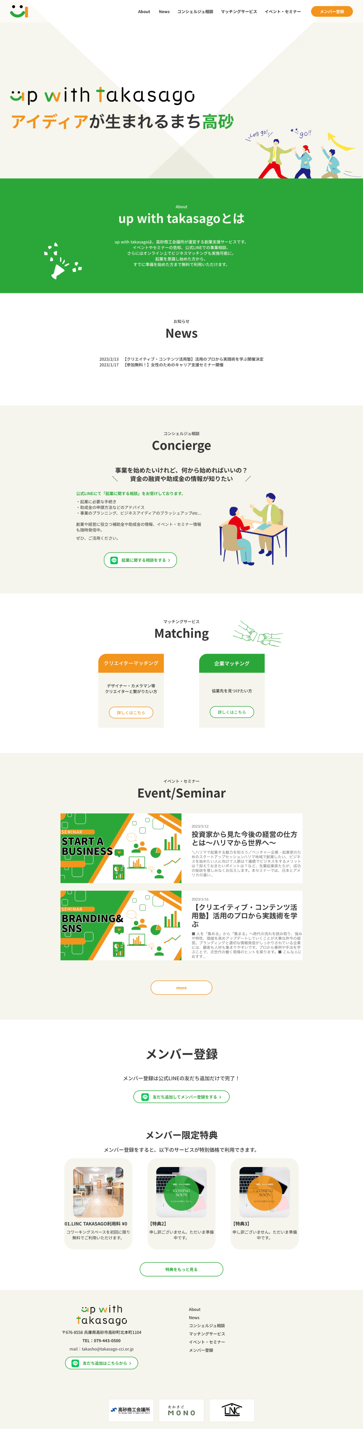 実案件|webデザイン/STUDIO実装 すぎうらあすか デザイナー OVERVIEW https://upwithtakasago.com/ YEAR 2023 兵庫県高砂市でこれから起業する方に向けてのサイトを制作しました。サイトデザイン、ロゴ、STUDIOでの実装を担当しました。 WEBSITE