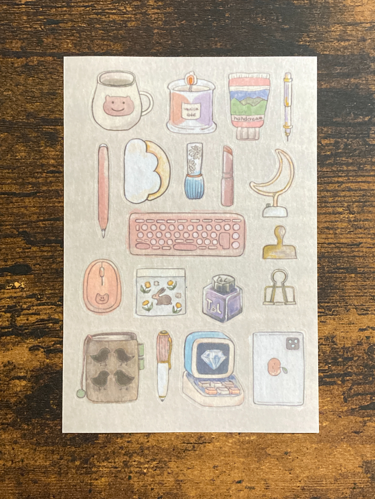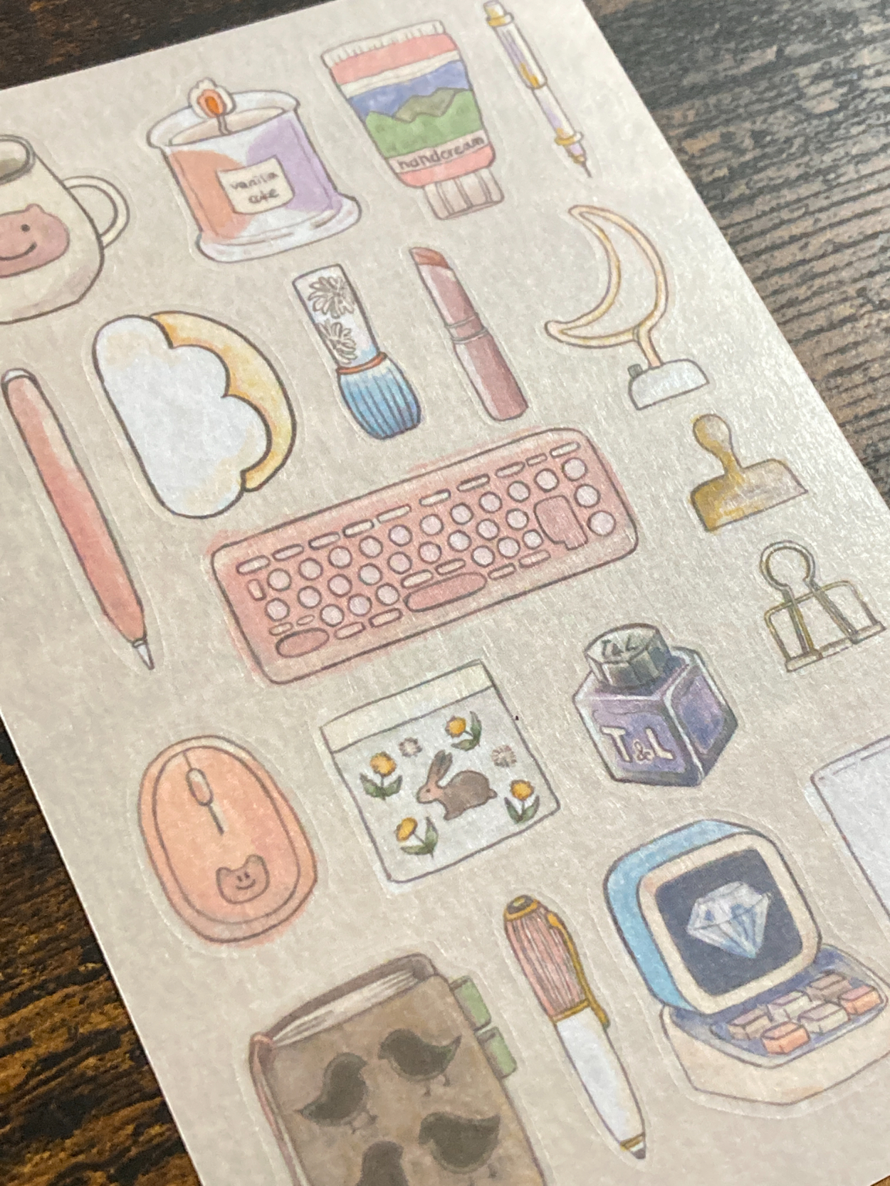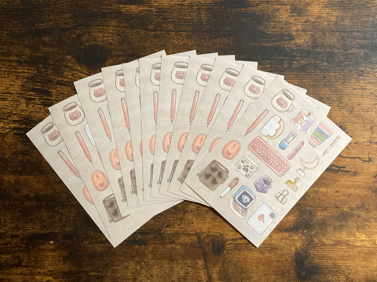 ふだんの生活で使っている身の回りのアイテムを集めて、ステッカーにしました。