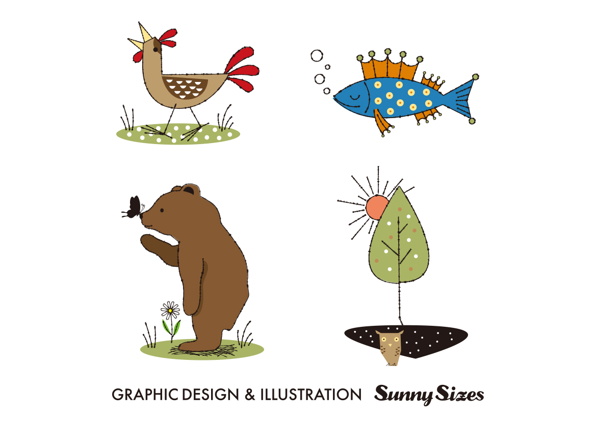 イラストレーションとデザインを全てSunny Sizesで制作しています。