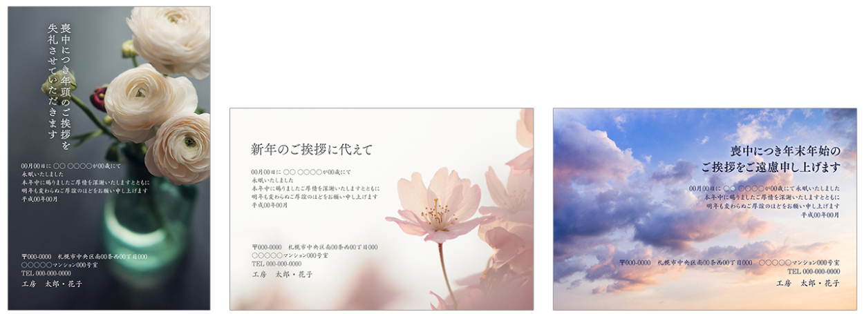 「喪中はがきデザイン工房」は「年賀家族」の姉妹サービスになります。アッパーミドルの方が中心の年賀家族の会員さま向けに、高級路線の喪中はがきとしてスタートしました。