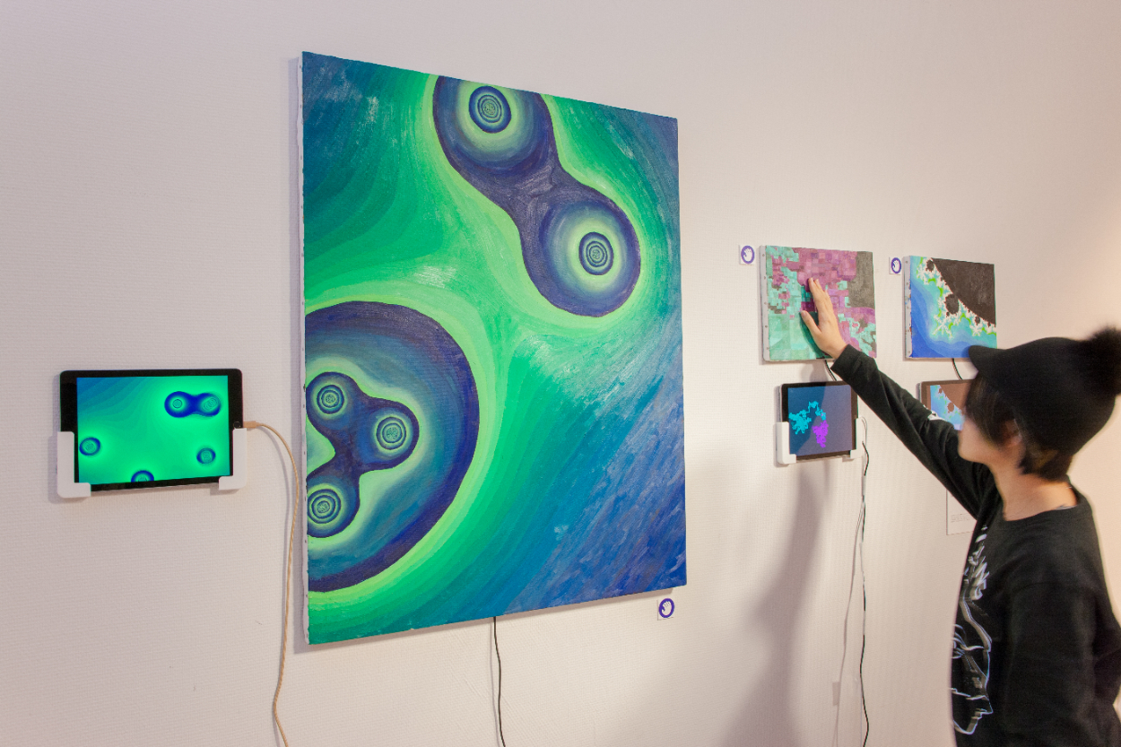 この作品は簡単に述べると触れると音がなるインタラクティブな油絵である。